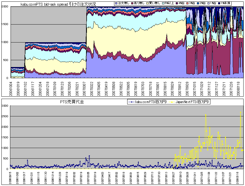 kabu.comPTSの引けの注文状況と、売買代金のグラフです。