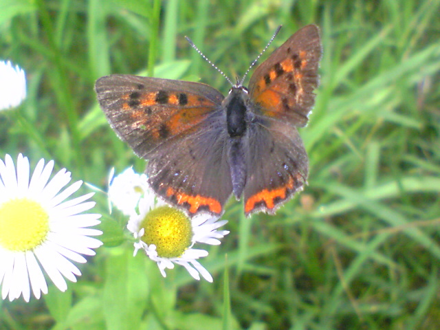 野いちごのなる季節です。冬になるものもありますが、この時期になるのが普通でしょう。昔、キイチゴを沢山食べた思い出があります。これも食べれます。野いちごは多くの歌や詩に歌われていて、人気ですね。直ぐとなりにベニシジミも止まっています。大高緑地2011.6.26