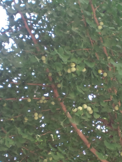 近所にイチョウの街路樹があるんですが、ふと見上げてみると、すでにもうたくさんの銀杏の実をつけていました。