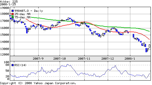 図1:日経平均6ヶ月日足(Yahooファイナンスより)