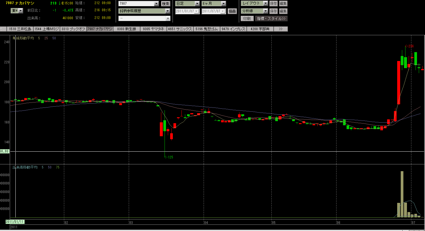 自分は持っていた株が一時的に少し上げてから思ったようにブレイクしないでしばしもみ合っていると、我慢できずにチキン利食いをしてしまう傾向がある。そして、そういうのに限ってしばらくしてから、自分の元をあれよ~って飛び立たれていく(苦笑)。