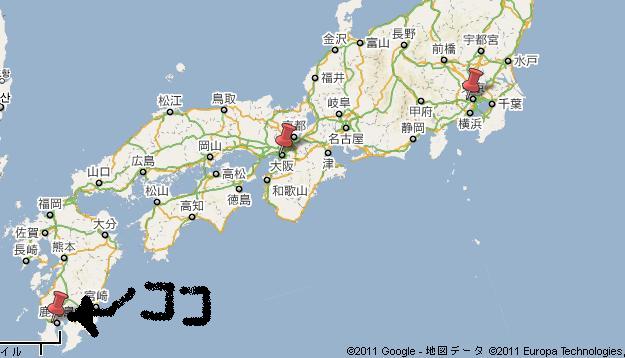 とおもっての思いつき企画(大阪だと九州は距離もそこそこです。)