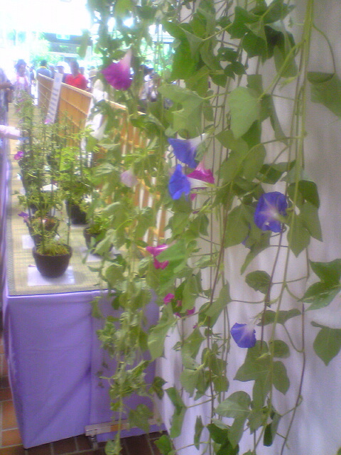 朝顔にも変化朝顔があり、そこのひとが変化朝顔を配ってくれました。ただでもらえるので並んでいました。