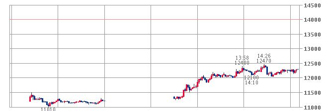 後場に入って1000円以上上げる。
