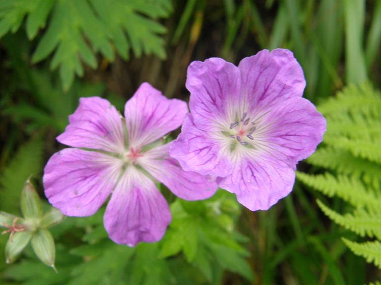左からハクサンフウロ、ハクサンコザクラ、ハクサンイチゲ