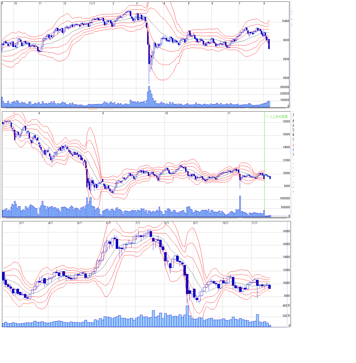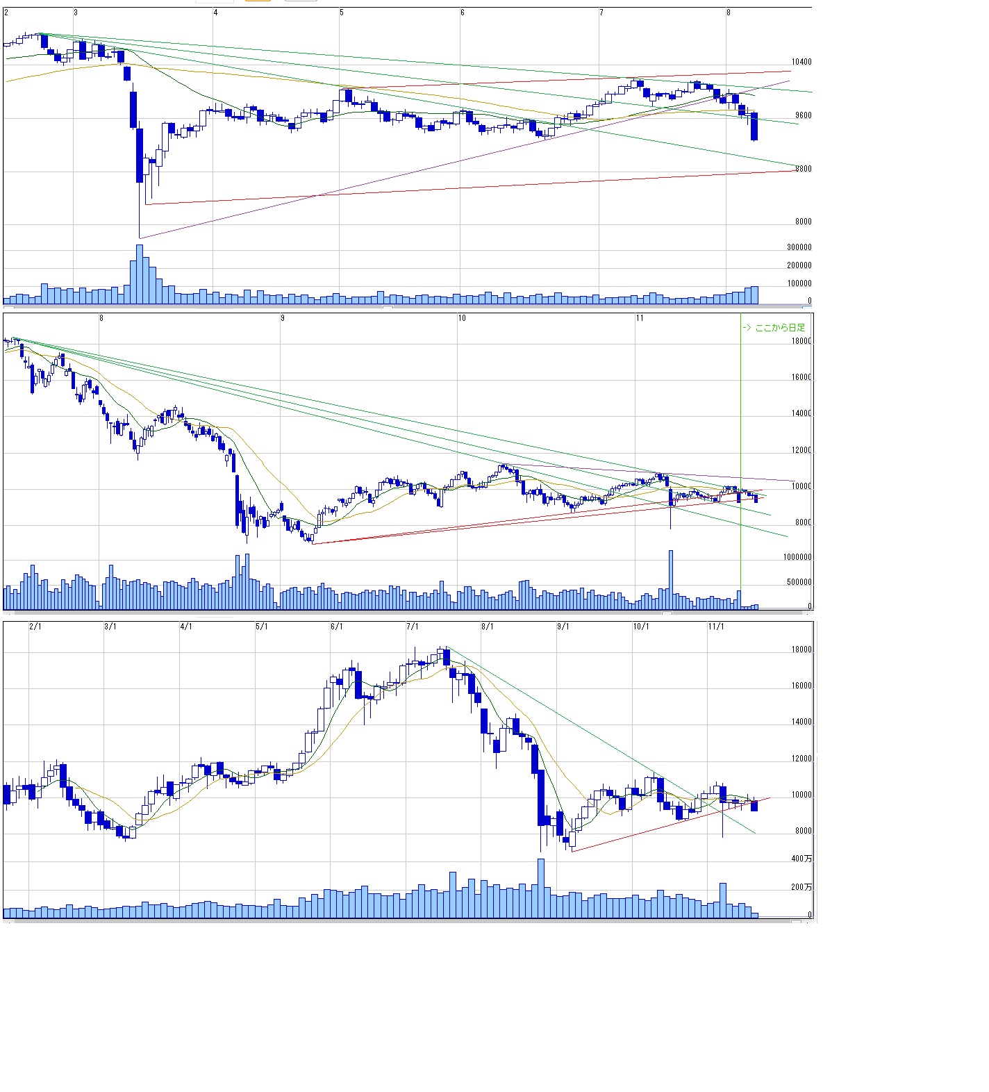 計算値全て下つきぬけましたね、、、 う~ん トレンドラインくらいしか下値めどがみあたらない