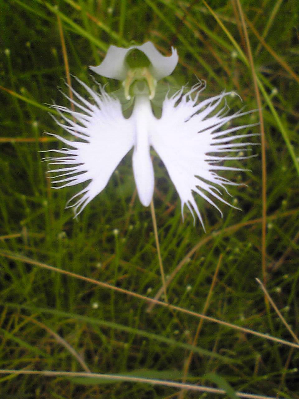 サギ草が咲いていた。サギ草の奥にまだ小さいシラタマホシクサが見える。