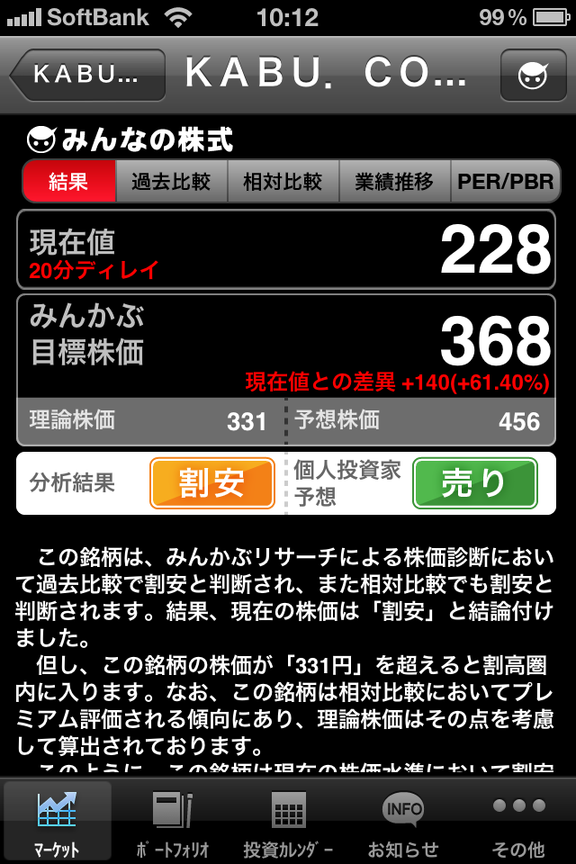 みんかぶ目標株価や株価診断のほか、ポートフォリオ管理や投資カレンダーといった機能もありますので、スマートフォンユーザーの皆様は是非ご利用くださいまし。