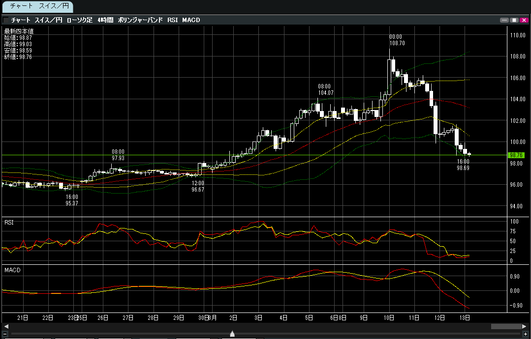 スイスフラン/円売り(一日で5円以上円安方向へ)