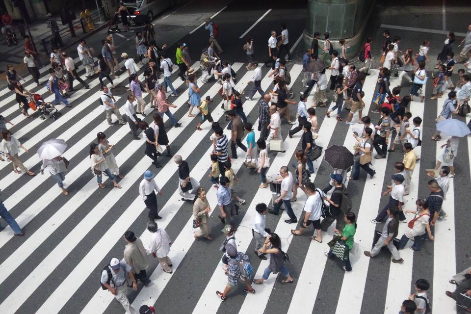 横断歩道の上には「あと何秒」の電飾。青になる10秒前には15人ほどが見切り発進