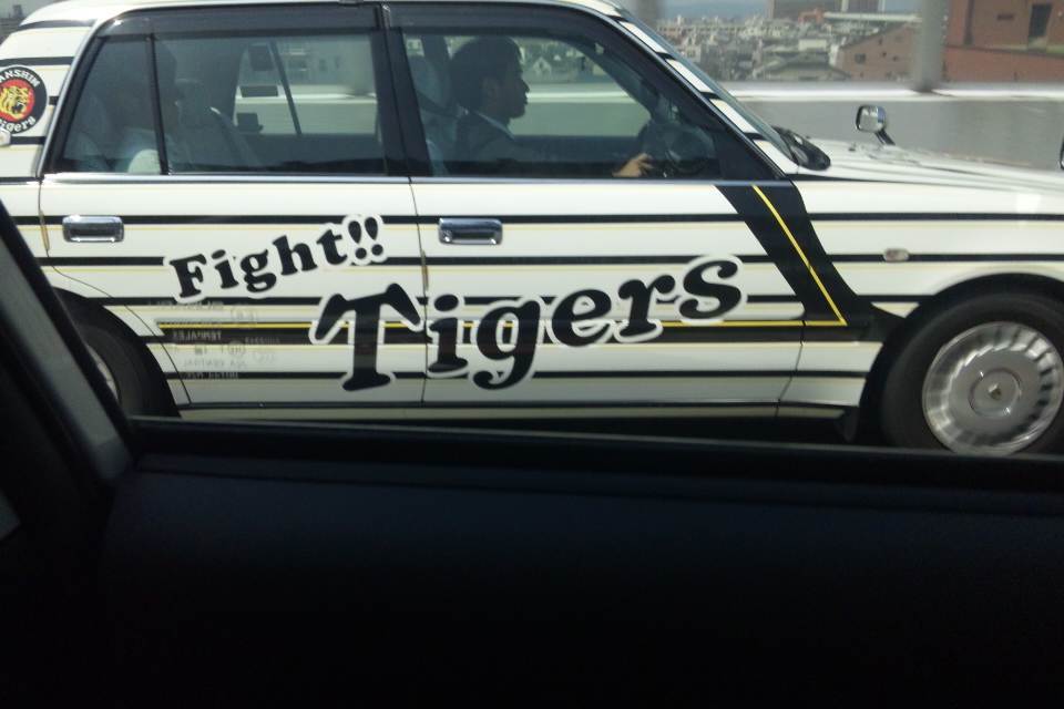 阪神カラーのタクシーが!(うしろのにーちゃん爆睡)