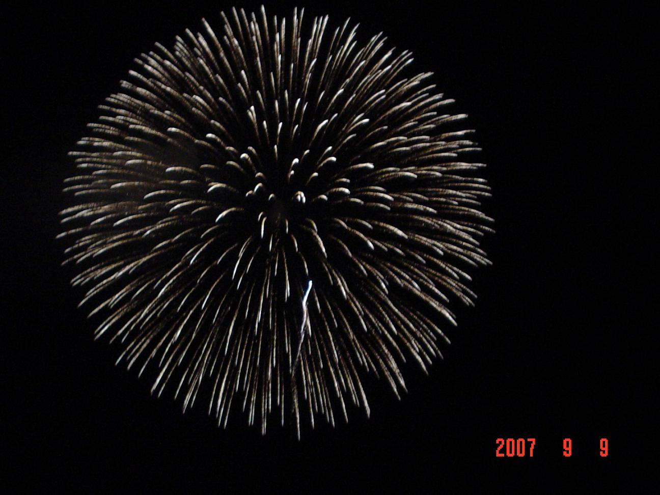 花火、写ってますね。。大阪は、PLか、淀川花火これが、有名です。PLの花火は、迫力ですよ。。。近くで見れるんです。ど、迫力。。写真は下手なもんで、去年も失敗しました。。