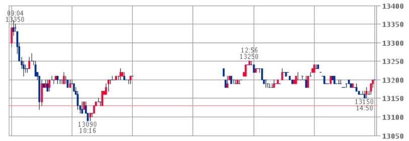 11:00前売り、13210円。終値13200円。