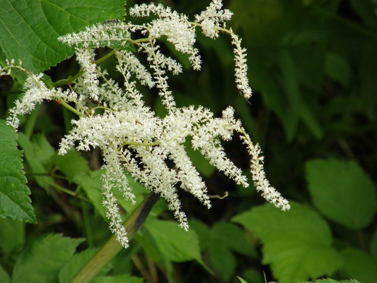 左がキンコウカ(ゆり科)、右がトリアシショウマ(ゆきのした科)