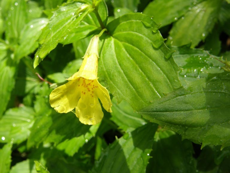 左がオオバミゾホウズキ(ごまのはぐさ科)、右がシロバナイナモリソウ(あかね科)