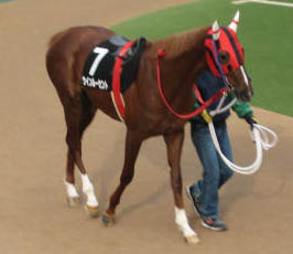 パドックでは、この馬にしては、やけに大人しい感じがした。4コーナーで両側からぶつけられ嫌な予感がしたが、伸びなかった。武騎手は、ぶつけられたのはそれほど影響ないと思う。距離が短いのと今日のようなパサパサの乾いた馬場もあまり合わないのかも。でもまだ乗り難しい面がある馬なのかもしれません。うーん、安藤勝巳騎手に乗ってもらったときの距離を伸ばしたほうがこの馬にはあうよ。というのが的を得ているのか。。。 残念