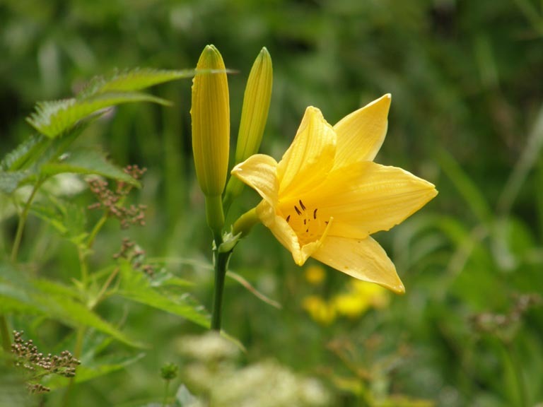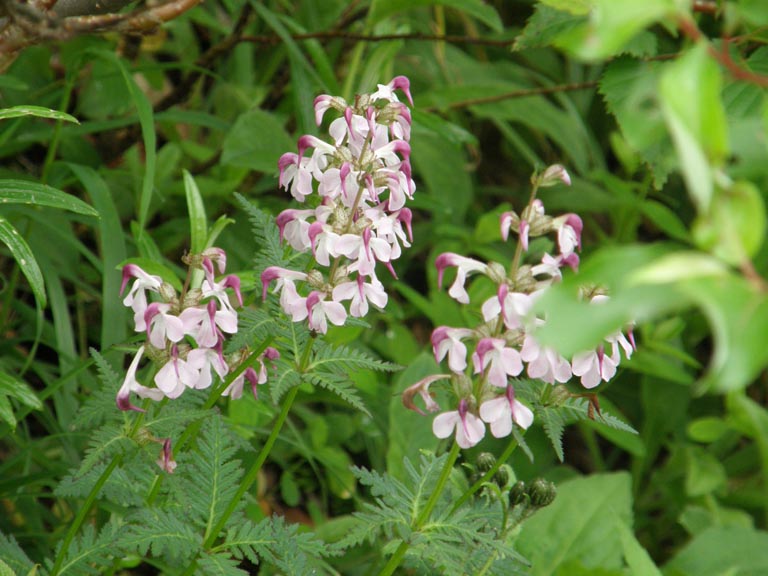 左はヨツバシオガマ(ごまのはぐさ科)、右はニッコウキスゲ(ゆり科)