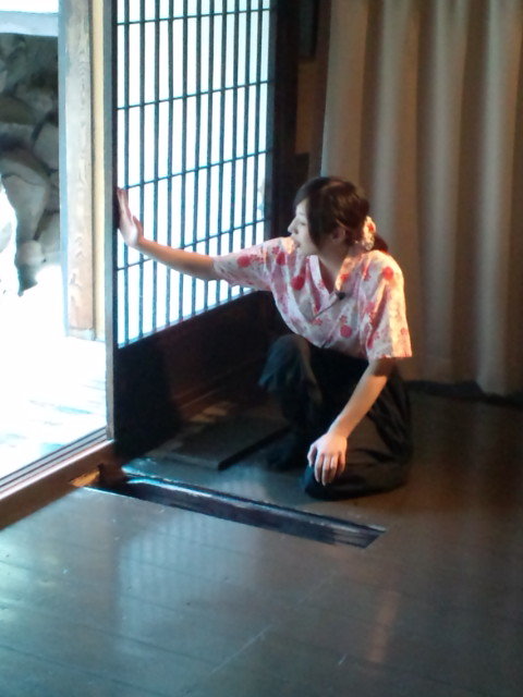 忍者屋敷ではくの一(といっても写真のとおりあまり忍者っぽくなくかわいい女性でした)が仕掛け・からくりを案内してくれました。
