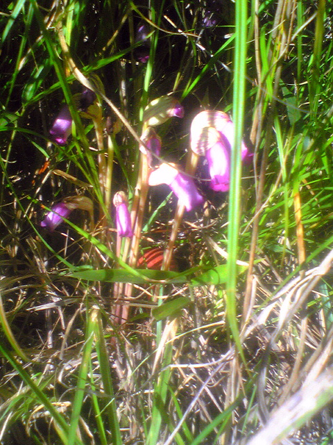 昔はススキの中に普通に見られたナンバンギセルですが、最近は珍しくなってきました。ススキに寄生して育つために、ススキ自体が減ってきて、すごく珍しい。いつも時期を逃してしまいます。この下のほうにイグチの仲間でしょうか、キノコが見えます。大高緑地2011.9.6
