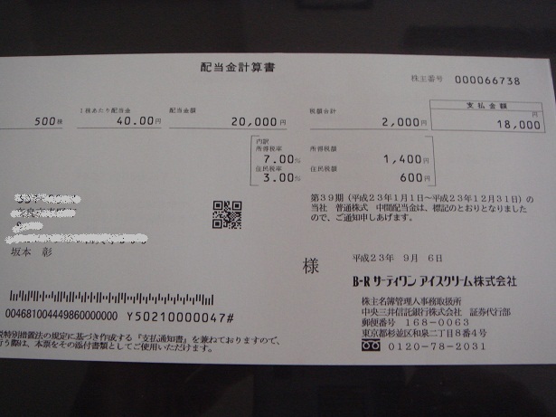 31アイスから配当金と株主優待が届きました。