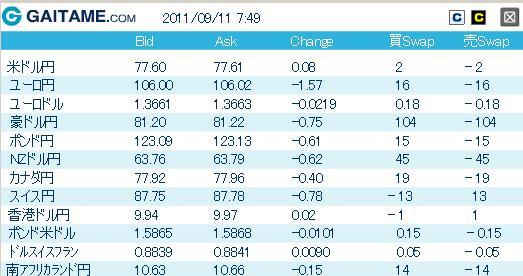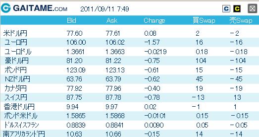 2011/09/12(月曜) 米3年国債入札 上海、台湾市場休場 満月
