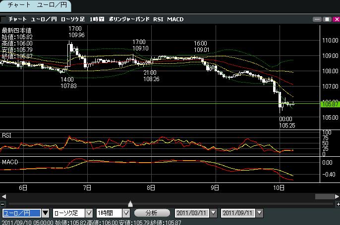金曜日に105円近くまでユーロは円高へ(財政危機ドミノ倒し中??)