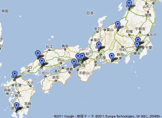 ★よきサポータに恵まれております(*・ω・)*_ _))ペコリン(今まで行ったところの地図をのっけてみました)