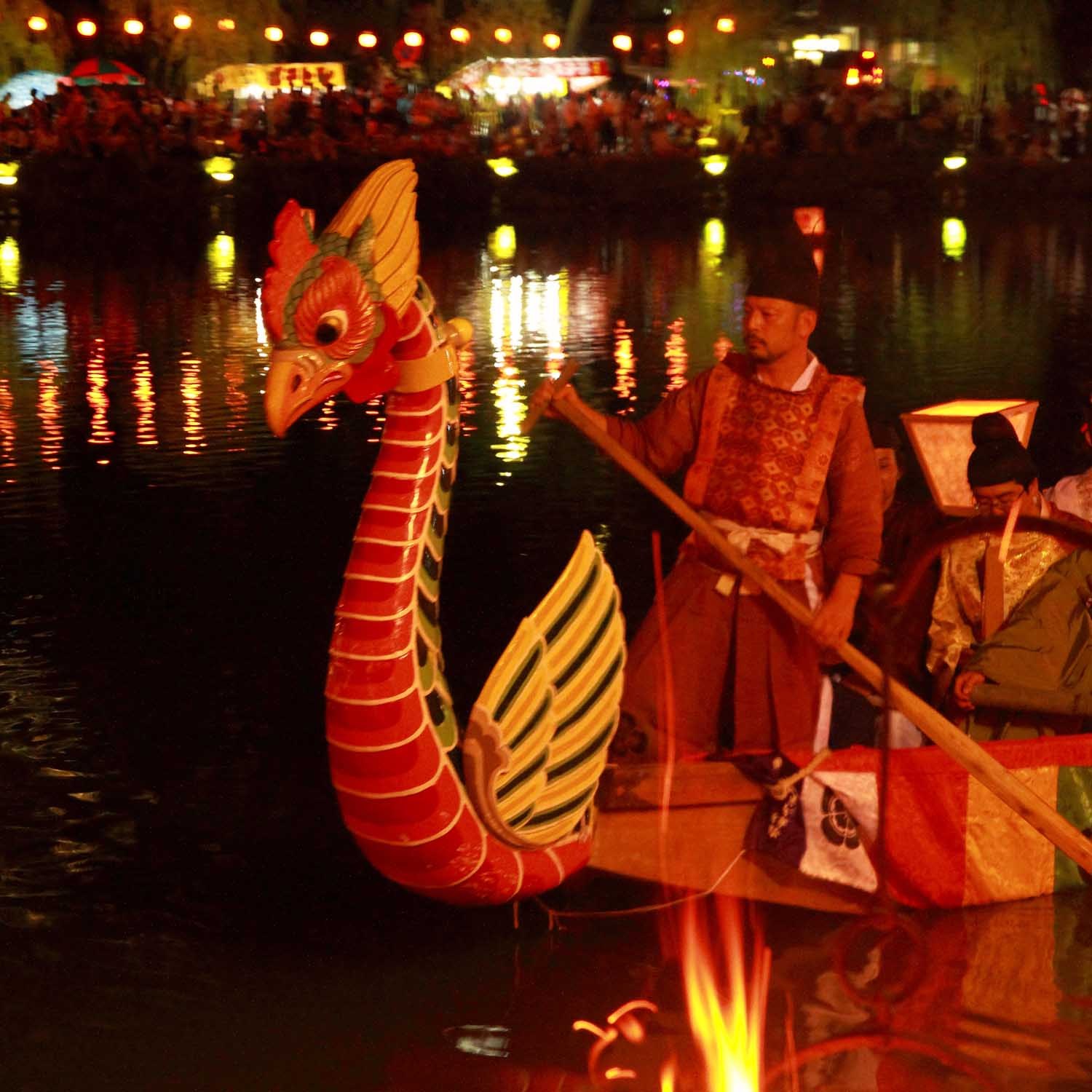 奈良 猿沢の池で行なわれた 釆女祭のクライマックス 船渡御