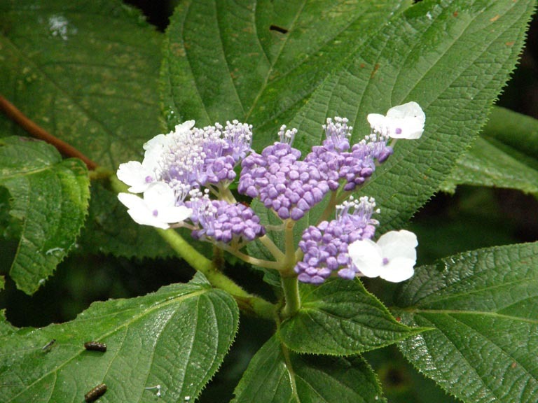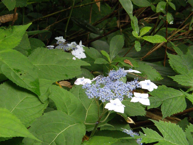 右はタマアジサイ、11.08.24牧ヶ谷にて