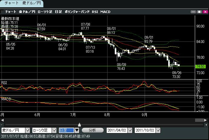 10月後半から主要企業の決算が始まり、おそらく「震災、円高の影響確認」が進むかなーと