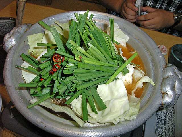 博多もつ鍋は、ニラがたぁ~ぷり、お鍋がグツグツ言いだしたら