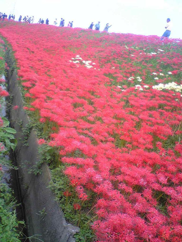 職場の前に運河が流れていて その土手に彼岸花が満開です