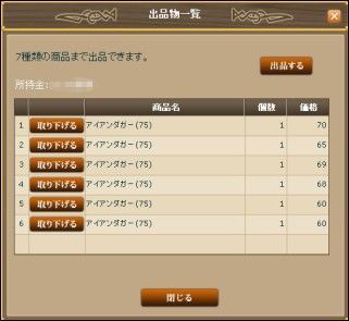 ゲーム中で作成した武器を市場で売るのです。