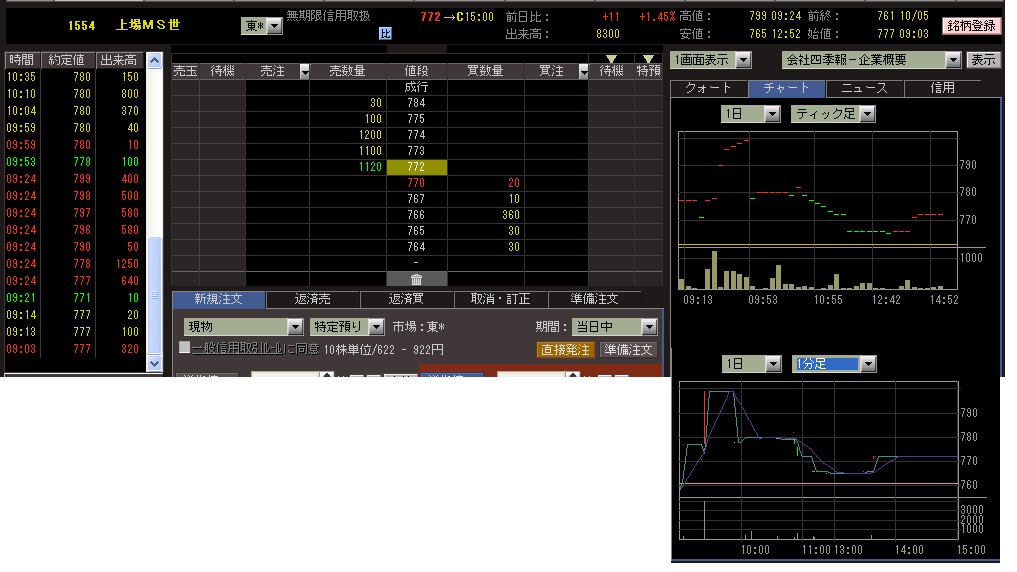 本日9:24 、1554(上場MS世界株)に、4000口の買い注文があり、金額にして315万円が約定。誤発注とみられます。
