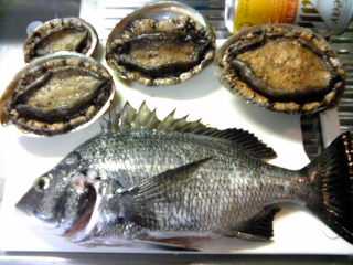 クロダイ(メイタ)32cm + あわびしゃん4コ いい仕事してる気分だわ