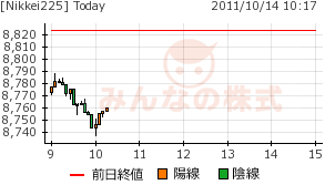 今日は8750円を鋏んでの値動き。