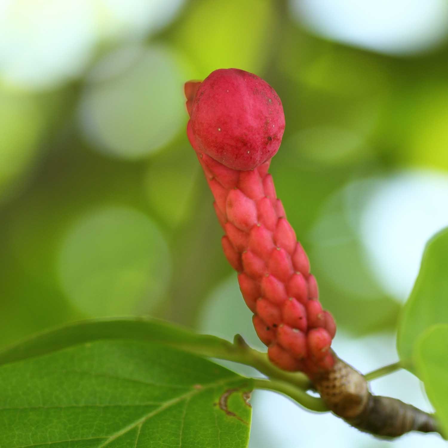 春先に見事な白い花を咲かせたハクモクレンは、こんな種子を作るんです。