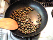 フライパンで炒った後、酒を霧吹きでっ♪伯方の塩を適量まぶしたら。。