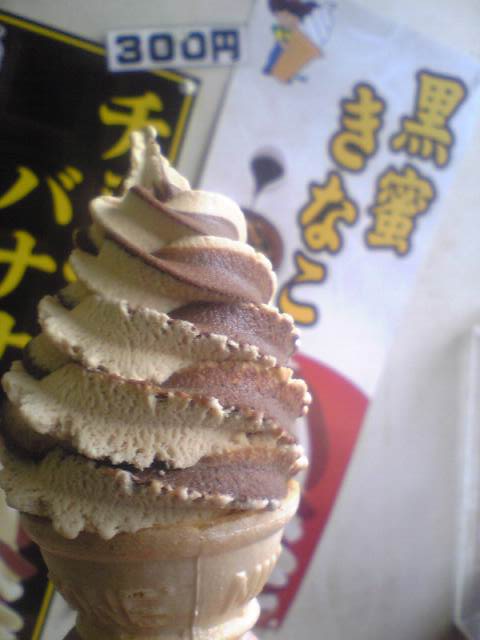 粉っぽいアマーイソフトです。お抹茶の前は通りましたが、さすがに敬遠。ブランコを見たピッチャーのよう。