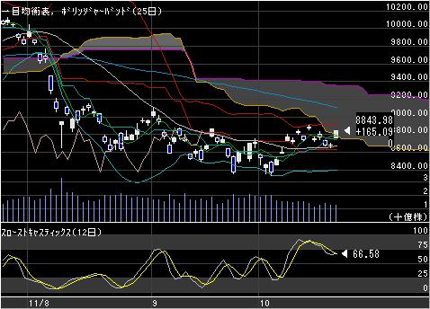 今後は高値を更新できるか。ボリバンに沿って上昇できるか。雲を抜けれるかが課題。