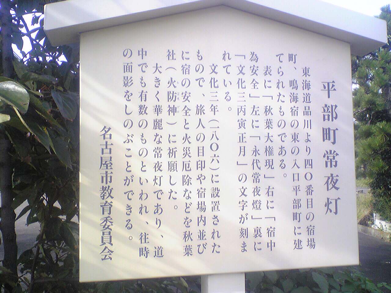 鳴海の宿の入り口にある常夜灯、松があったんですが枯れてしまいました。変わりにとなりの土地にある柿がなっています。東海道の風情が残っていて、有松から鳴海にかけて歩かれる人が多いです。道も当時のままの広さで狭いです。