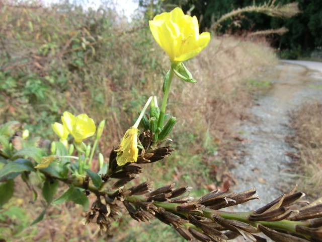 初めて歩く山道ですが、まず変な巨大月見草・・・