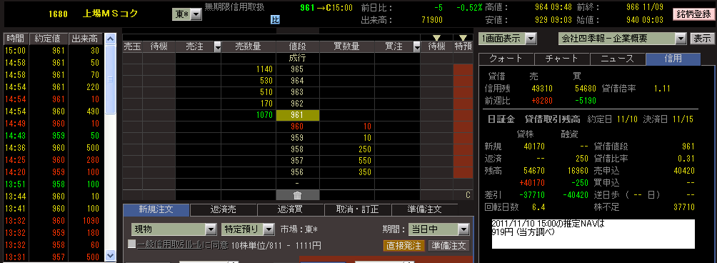 東証終値は961円(前日比-5円)