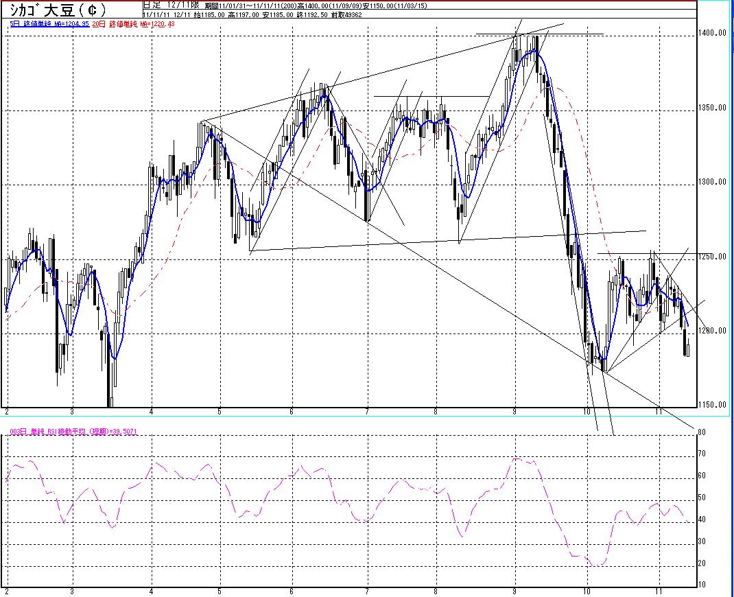 3分の1戻しからの下落が生じたため追加で大豆を売り建てました。