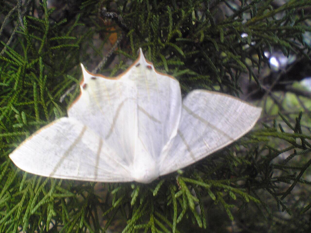 この時期良く見る蝶のような白い和服を着た女性のような蛾です。天女の羽衣のような感じでしょうか?