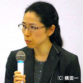 ”マイクを握り、身ぶり手ぶりで説明する女性官僚。彼女こそ、いま、TPPの黒幕と呼ばれる宗像直子・経済産業省通商機構部長(グローバル経済室室長)である。
