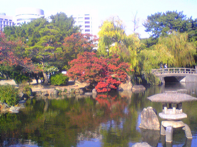 鶴舞公園の秋の池だったか?変な名前の池がありました。春はツツジ、秋は紅葉で綺麗です。
