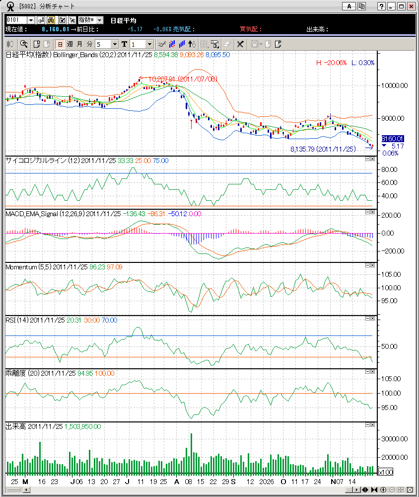 オシレータ系の指標でも「売られすぎ」がチラホラ出てボリンジャーバンドを伝うように下落していますが、11月の月末から年末相場へよく個人が好きな銘柄がにぎわうとも言われます。