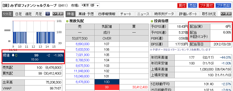 何と日本を代表するような大手銀行株、みずほFG 8411の
