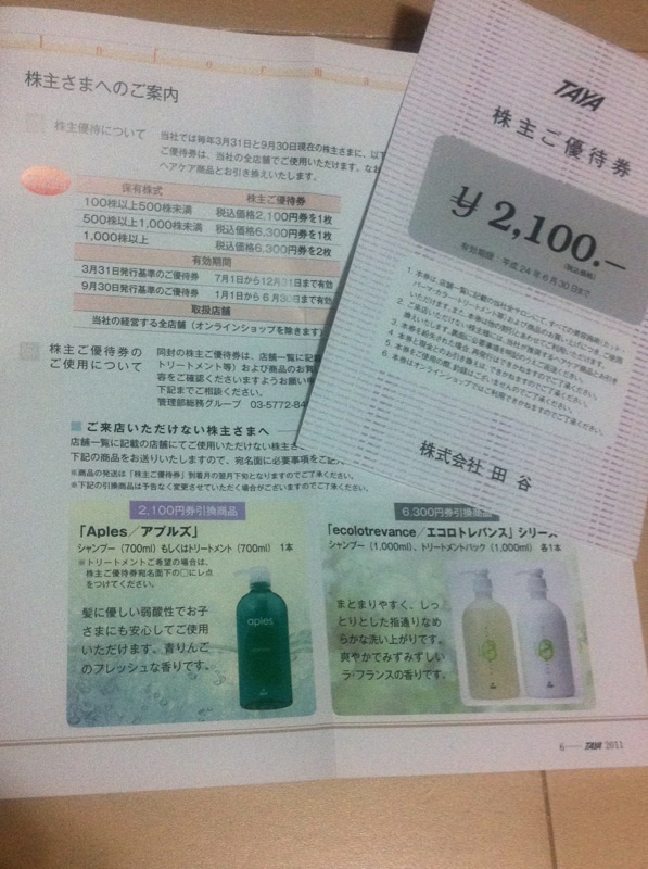 1,000株以上 (6,300円)2枚
